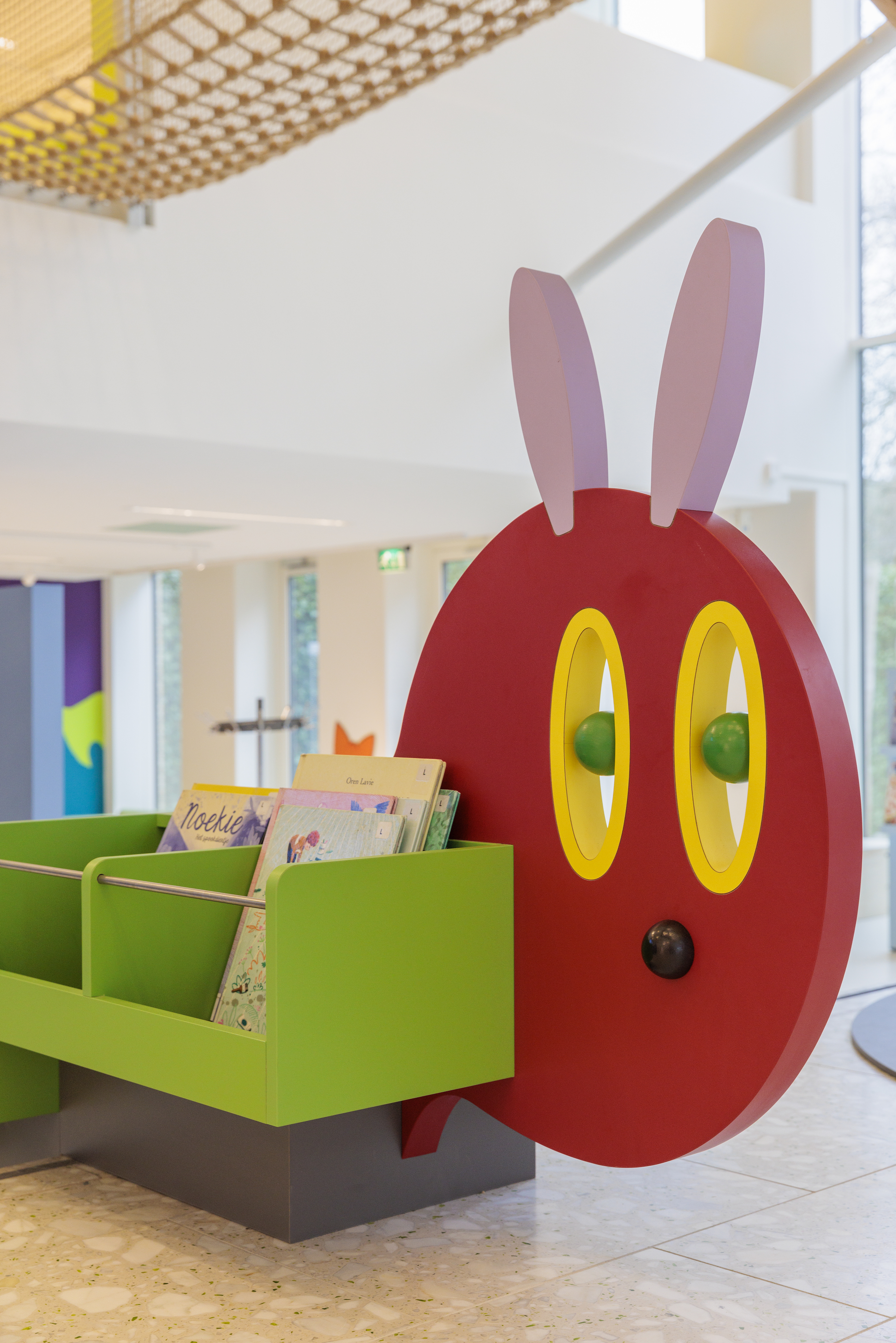 Realisatie van de vaste inrichting, de boomhut, raket, boekenkasten, speelhoeken, horecameubel